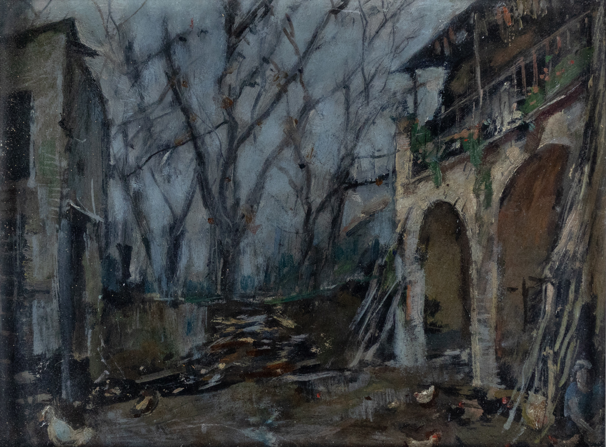 Gennaro Villani (Napoli 1885 - 1948), Meriggio di campagna, Olio su cartone, 30x40 cm.