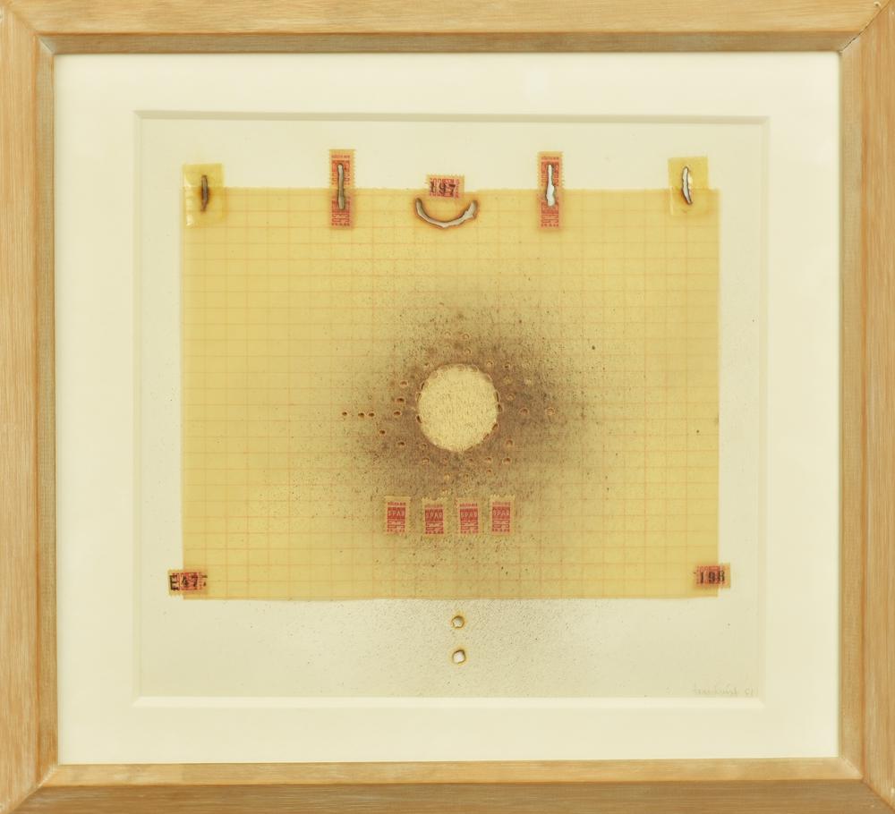Jorrit Tornquist, (1938) COMPOSIZIONE tecnica mista su carta, cm 22x24 firma...