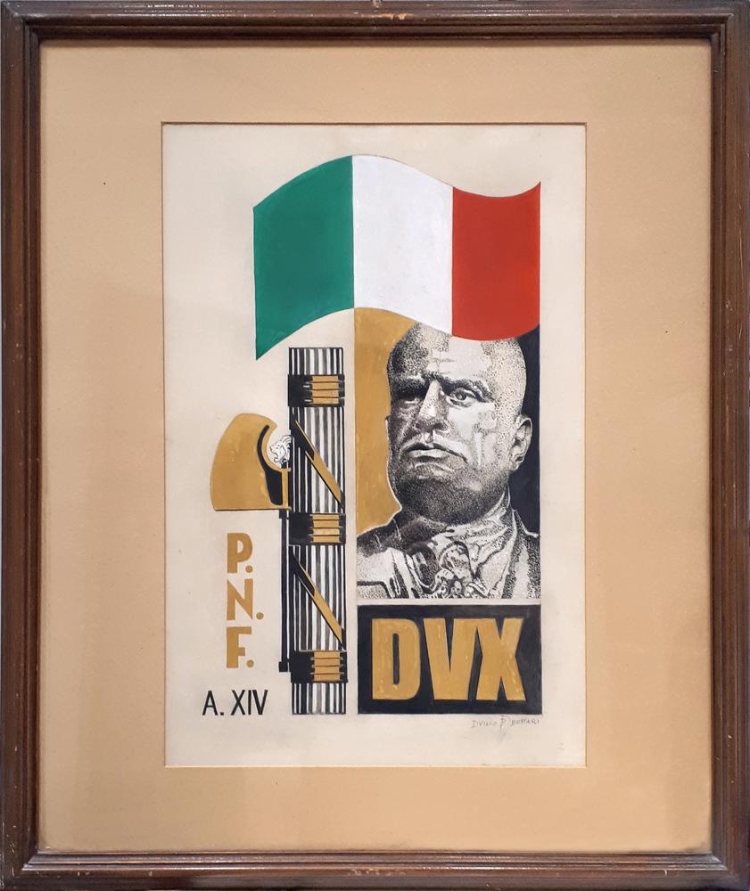 Duilio Bottari PROPAGANDA FASCISTA tempera su carta, cm 46x31 firma