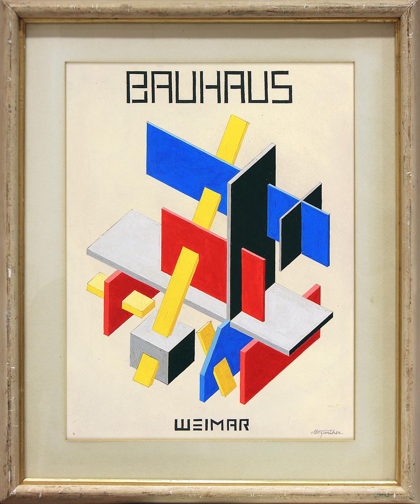 Otto Gunter COMPOSIZIONE GEOMETRICA tempera su cartone, cm 46x36 firma