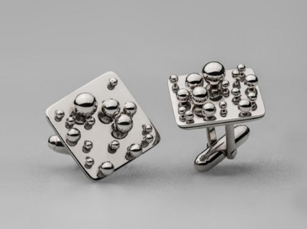 Pol Bury, (1922 - 2005) GEMELLI in argento 925, cm 2x2, peso gr. 12 circa;...