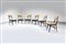Sei sedie con struttura in legno, sedute e schienali imbottiti rivestiti in velluto.