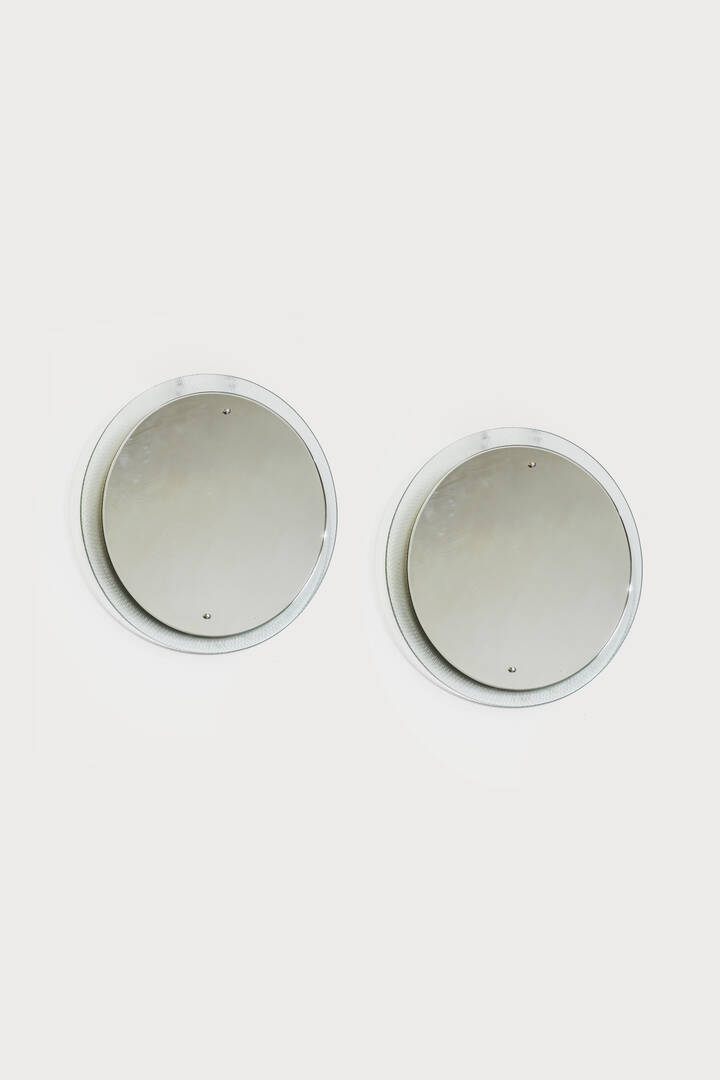 Coppia di specchi con cornice in vetro battuto trasparente e specchiato.