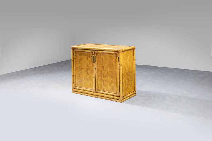 Mobile a due ante con struttura in bamboo e particolari in ottone.