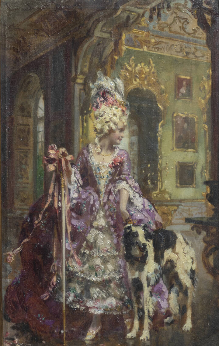PITTORE NON IDENTIFICATO<BR>"Dama con levriere"