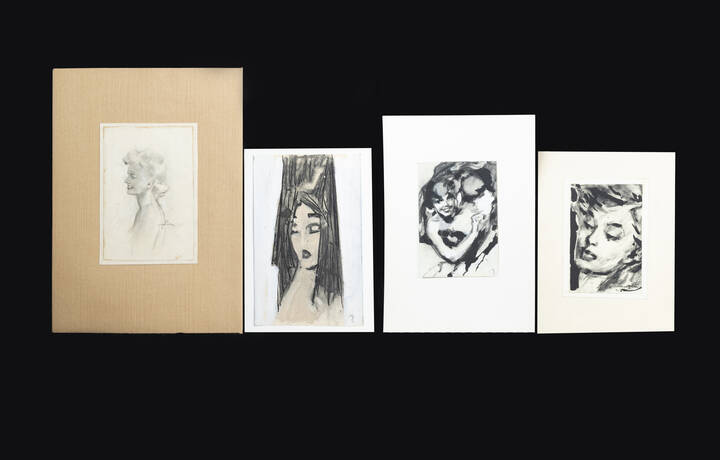 GOLIA (Eugenio Colmo)<BR>Torino 1885 - 1967<BR>"Quattro ritratti femminili"<BR>1 "Delicatezza" 1946<BR>2 "Granada" 1963<BR>3 ."Suffisance" 1958<BR>4 "Germoglio" 1965