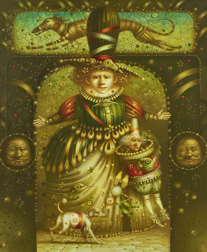 Lotto 380 | LEONID SERGEEV<BR>Mosca (Russia) 1953 - 2022<BR>"Composizione con figure e cani"