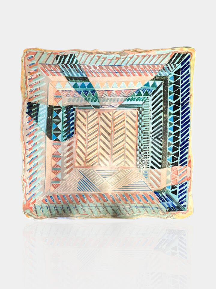 120x125 terracotta dipinta e invetriata a motivi geometrici