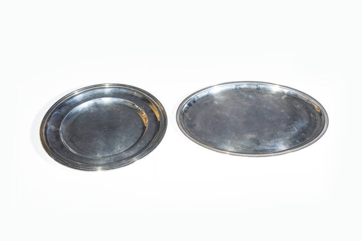 -1 vassoio di forma ovale con bordo decorato a palmette.