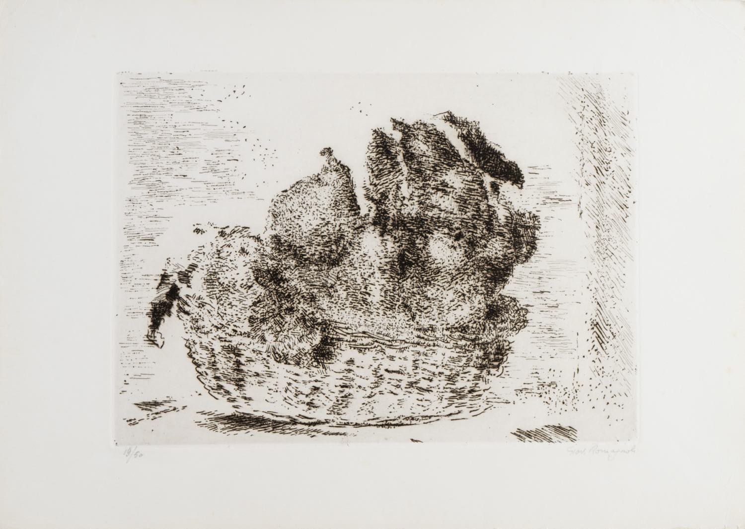 Giovanni Romagnoli (Faenza 1893 - Bologna 1976), “Natura morta con pere”. Acquaforte su carta, firmata in basso a destra, numero di tiratura in basso a sinistra 19/50, Lastra H cm 24.5x34.5