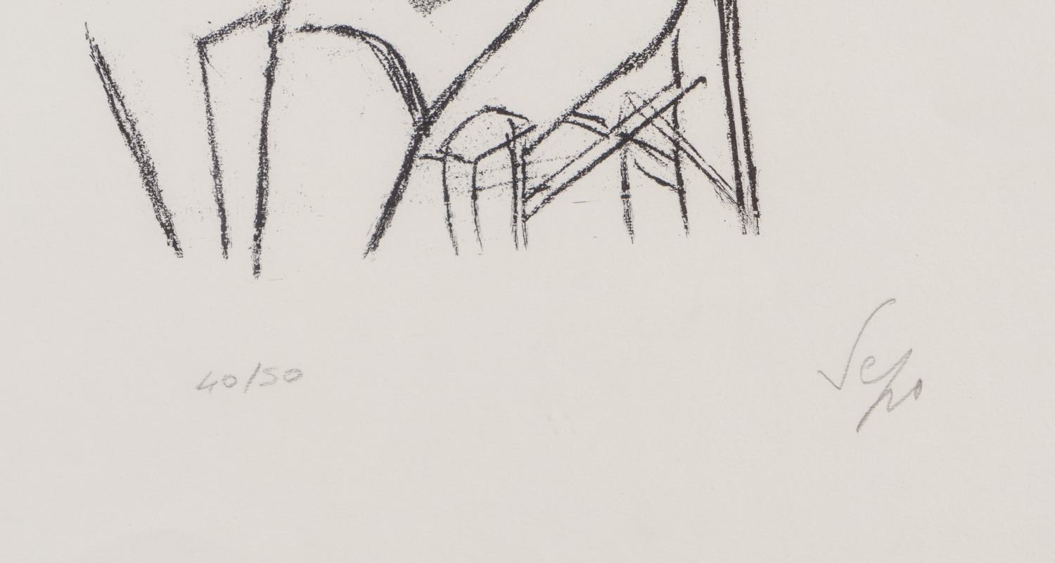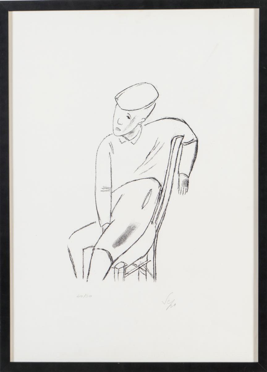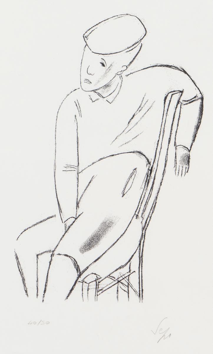SEPO, Severo Pozzati (Comacchio 1895 - Bologna 1983), “Uomo seduto”.Litografia su carta, firmata in basso a destra, numero di tiratura in basso a sinistra 40/50, Foglio H cm 70x50