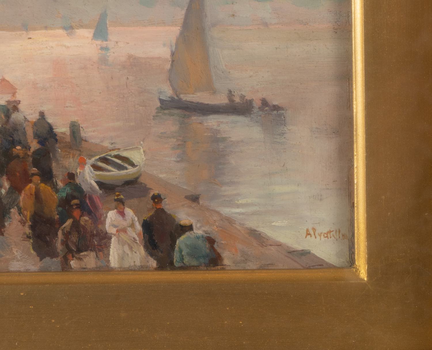 Attilio Pratella (Lugo 1856 - Napoli 1949), “Banchina di via Caracciolo”.Olio su tavoletta, firmato in basso a destra “A. Pratella”, reca al retro iscrizione con titolo, H cm 15x19.5