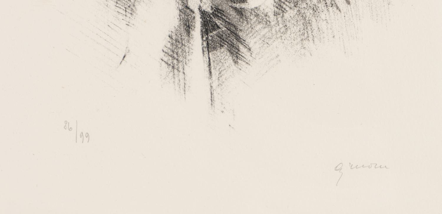 Giuseppe Ajmone (Carpignano Sesia 1923 - Romagnano Sesia 2005), “Senza titolo”.Litografia su carta, firmata in basso a destra, numero di tiratura in basso a sinistra 86/99, H cm 35x25