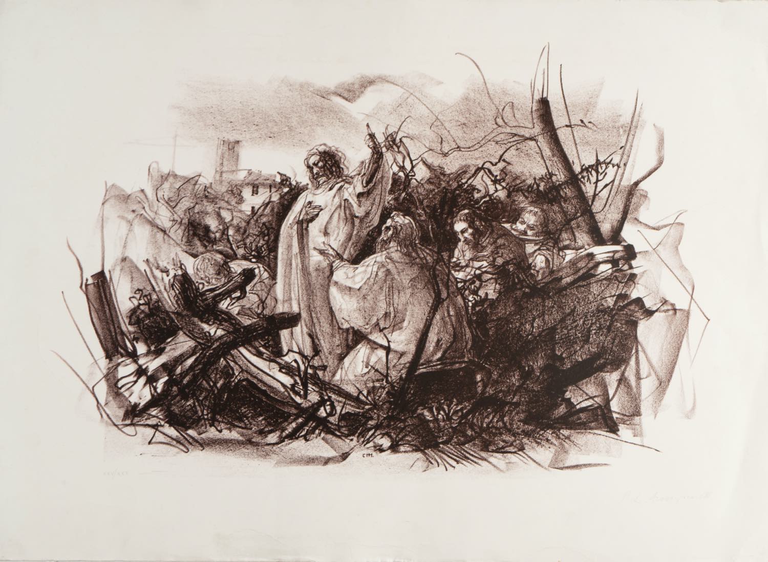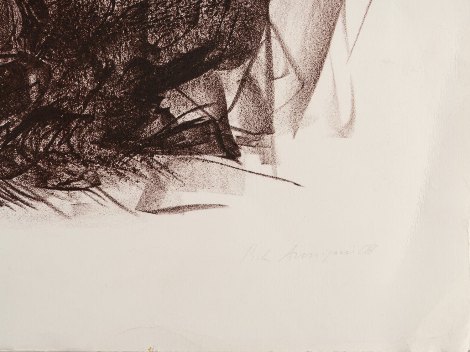 Pietro Annigoni (Milano 1910 - Firenze 1988), “Senza titolo”. Litografia su carta, presenta sigla sulla lastra e firma e sigla in matita in basso a destra, numero di tiratura in basso a sinistra XXV/XXX, Foglio H cm 56x77.5esemplare in basso a sinistra “p.a.”, Lastra 9.5x17 (lievi usure sul foglio)