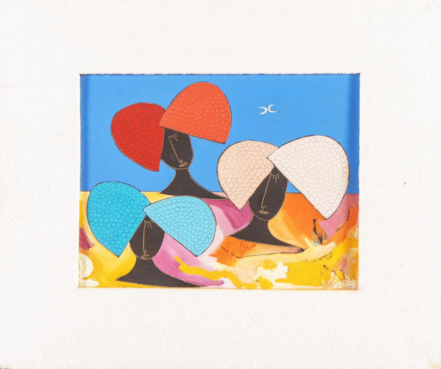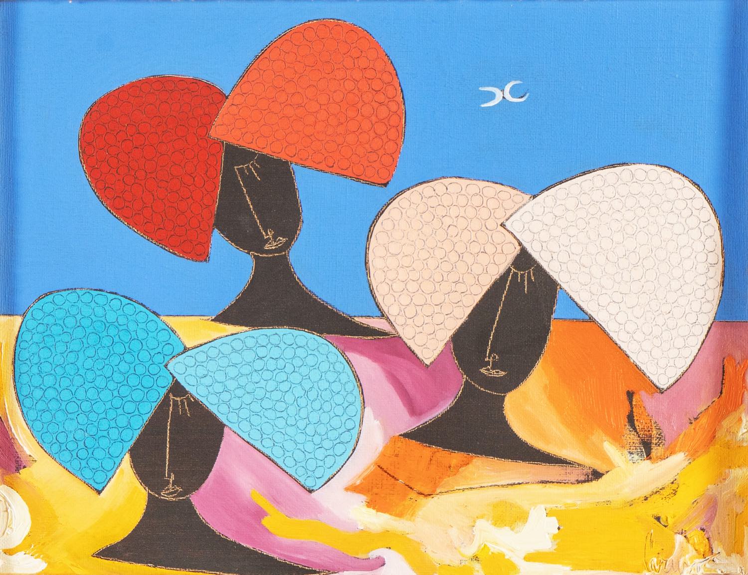 Bruno Caruso (Palermo 1927 - Roma 2018), “Volti femminili”, 1975.Olio su tela, firmato in basso a destra “Caruso”, reca al retro iscrizione con data, H cm 27x35
