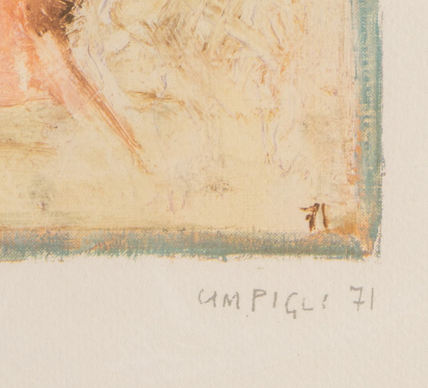 Massimo Campigli (Berlino 1895 - Saint-Tropez 1971), “Senza titolo”, 1971.Fotolitografia a colori su carta, Lastra H cm 18.5x19 - Foglio H cm 42x33