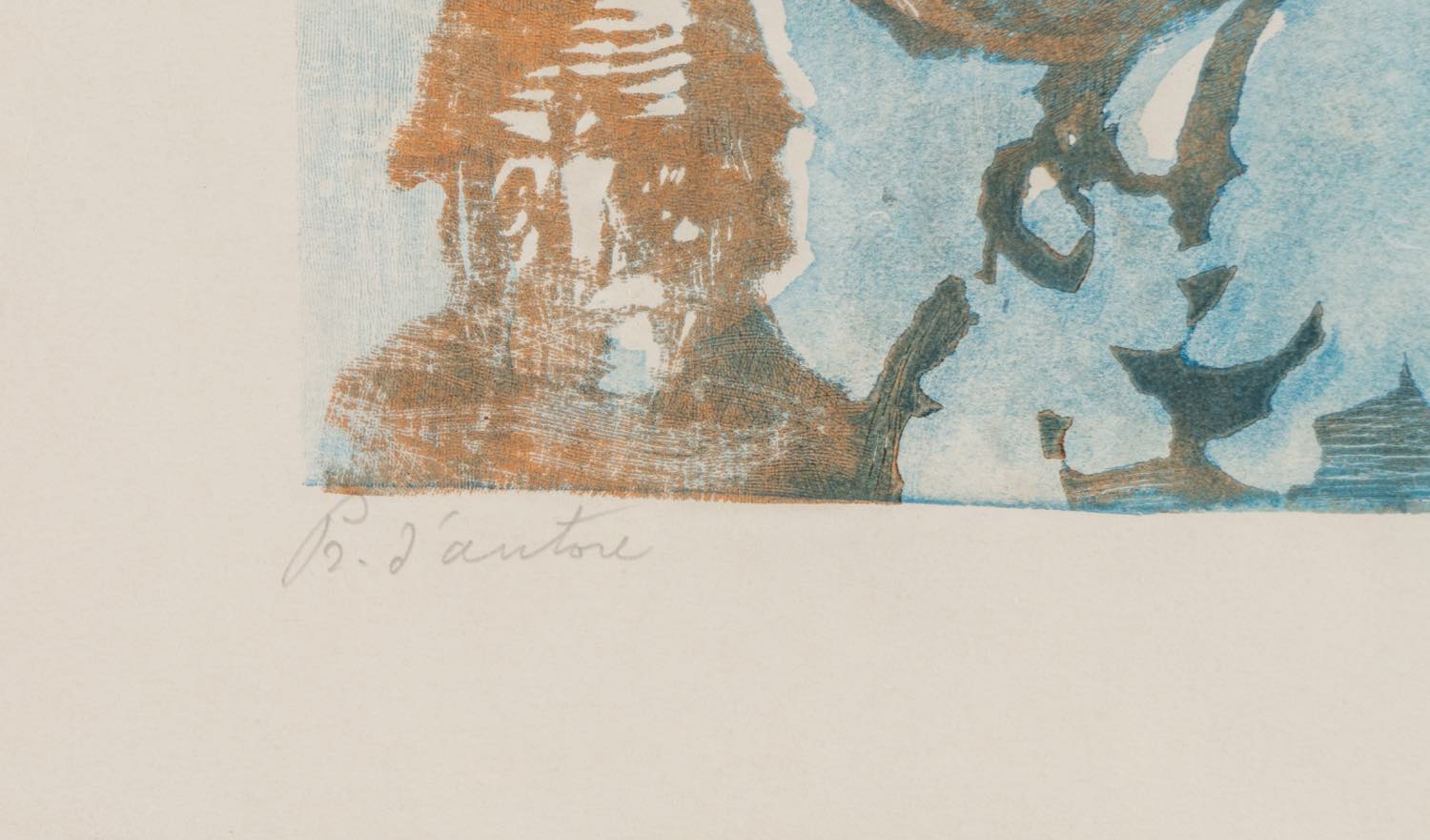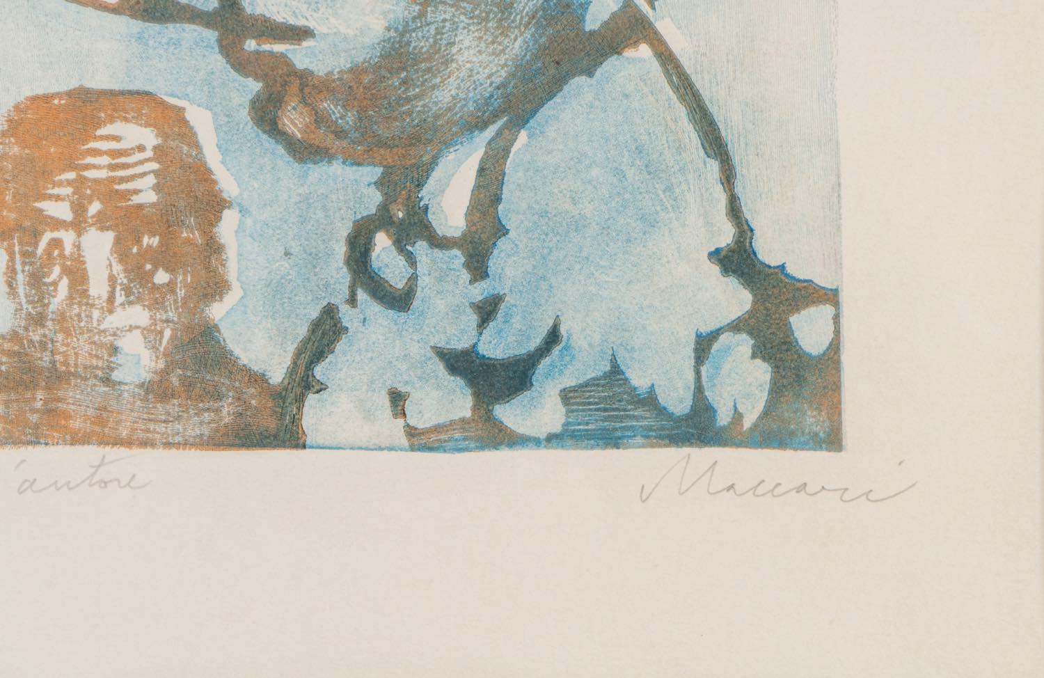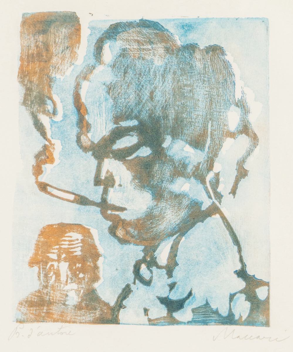 Mino Maccari (Siena 1898 - Roma 1989), “Uomo che fuma”.Litografia a colori su carta, firmata in basso a destra, reca in basso a sinistra esemplare “Pr. d’autore”, presenta al retro timbro della Galleria La Nuova Loggia - Bologna, Lastra H 24x20