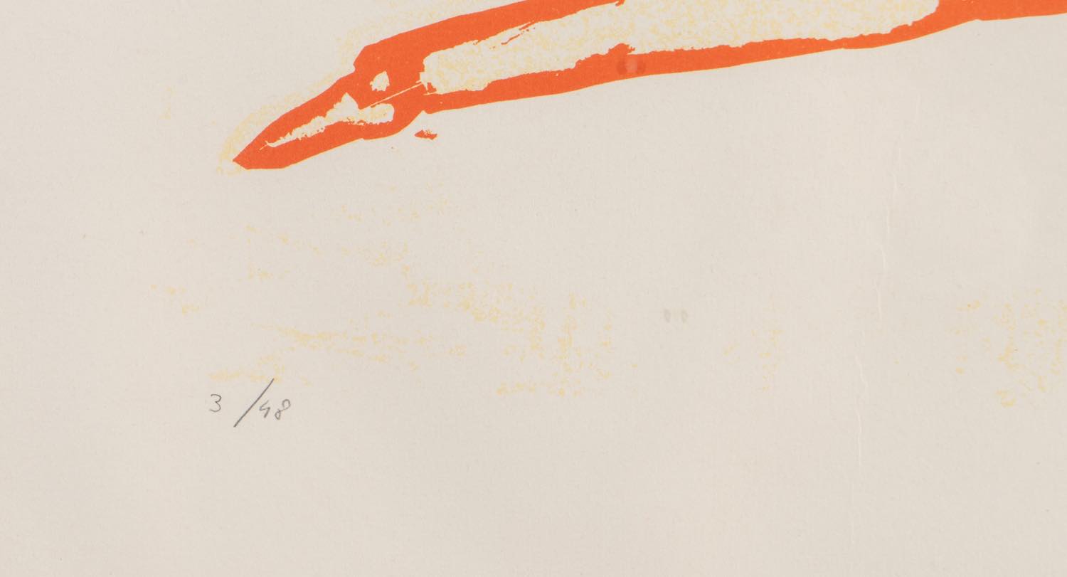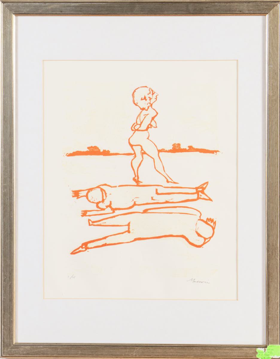 Mino Maccari (Siena 1898 - Roma 1989), “Senza titolo”.Litografia a colori su carta, firmata in basso a destra, numero di tiratura in basso a sinistra 3/48, Lastra H cm 46x35