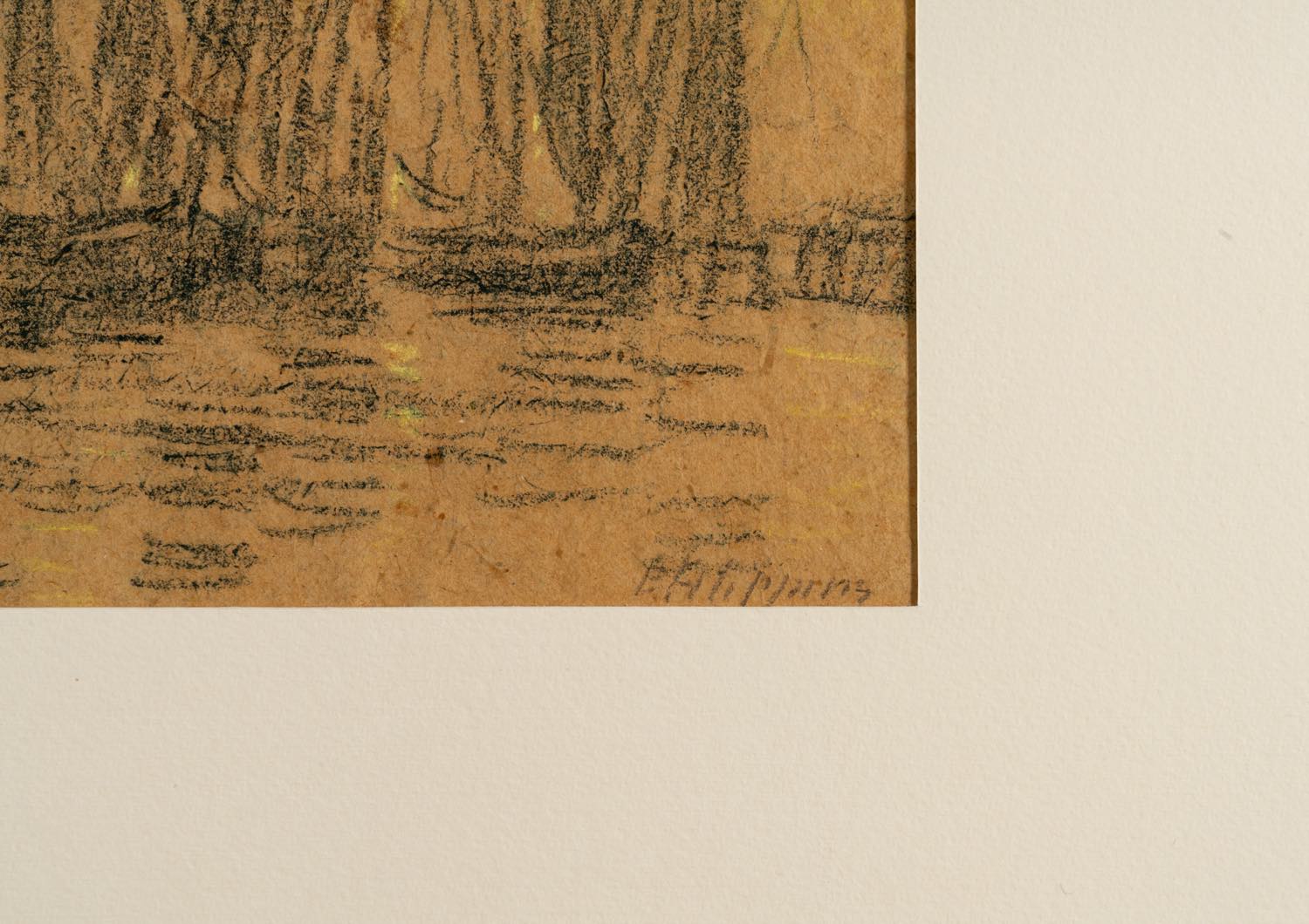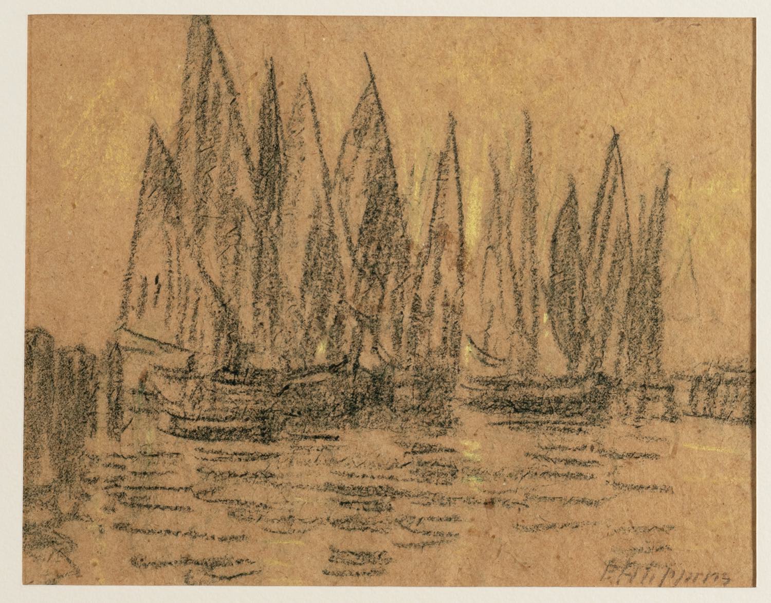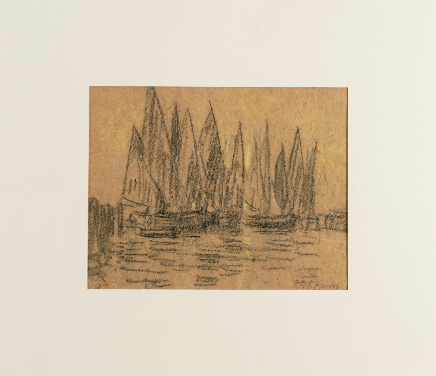 Emilio Filippini (Cattolica 1870-1938), “Imbarcazioni”.Carboncino su carta, firmato in basso a destra, H cm 18x23 (lievi usure)