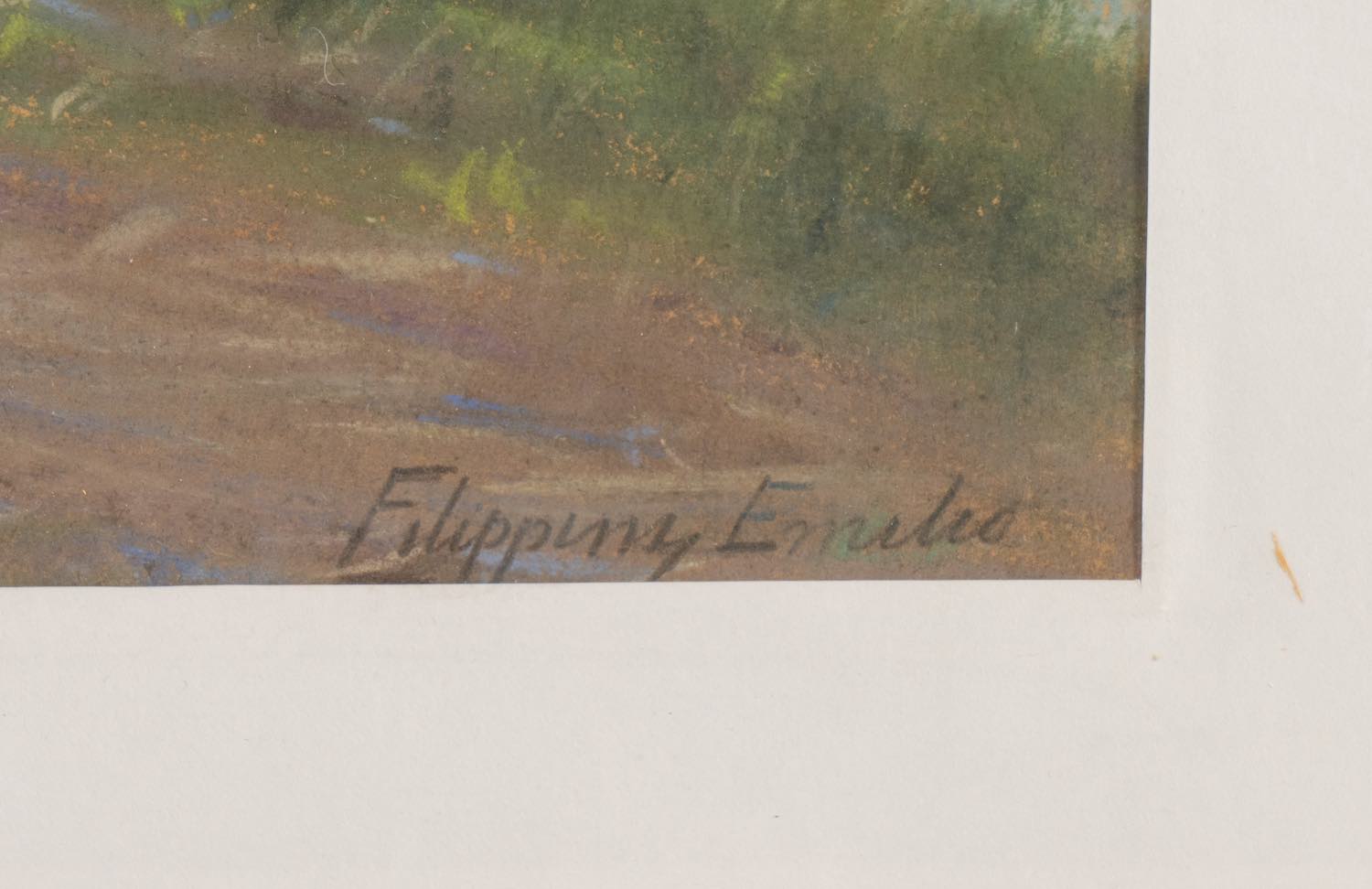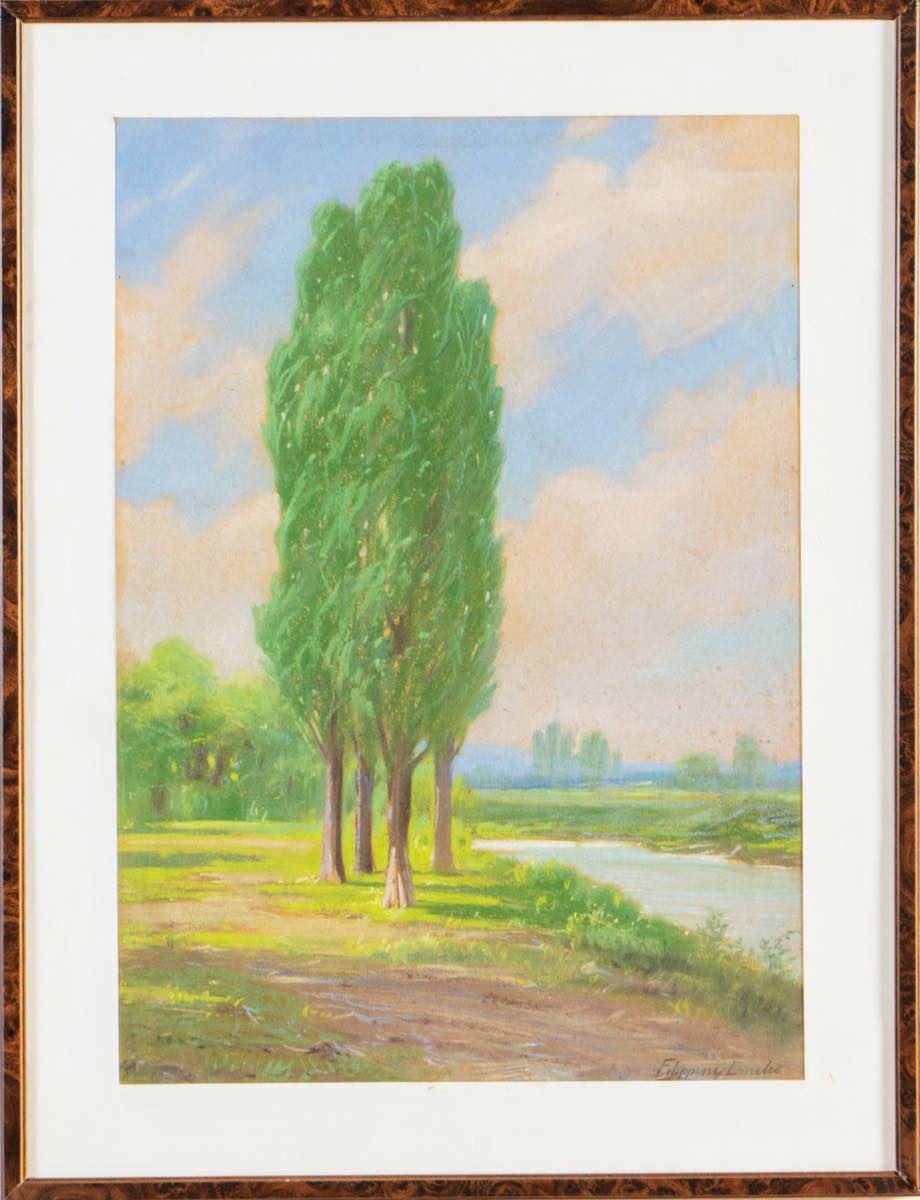 Emilio Filippini (Cattolica 1870-1938), “Paesaggio con cipressi”.Pastello su carta, firmato in basso a destra, H cm 48x34