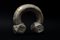 . . Cm 12,00 x 12,00 x 4,50. Grande cavigliera in argento lavorata a canna vuota, decorata ed incisa a motivi geometrici.