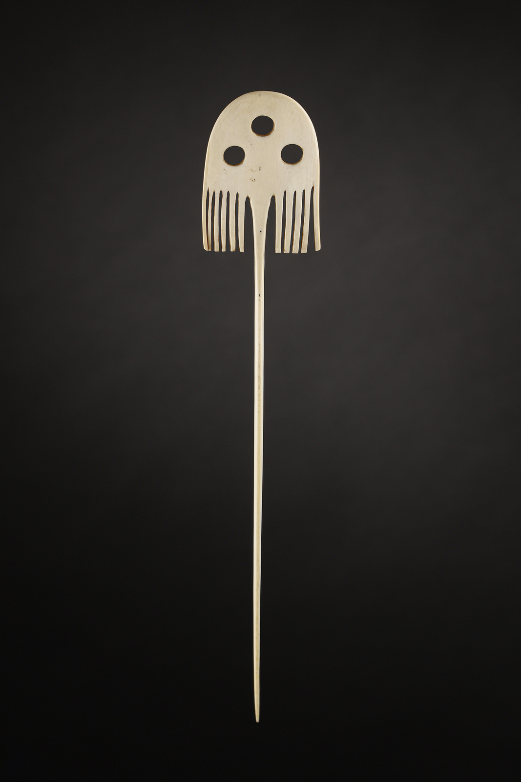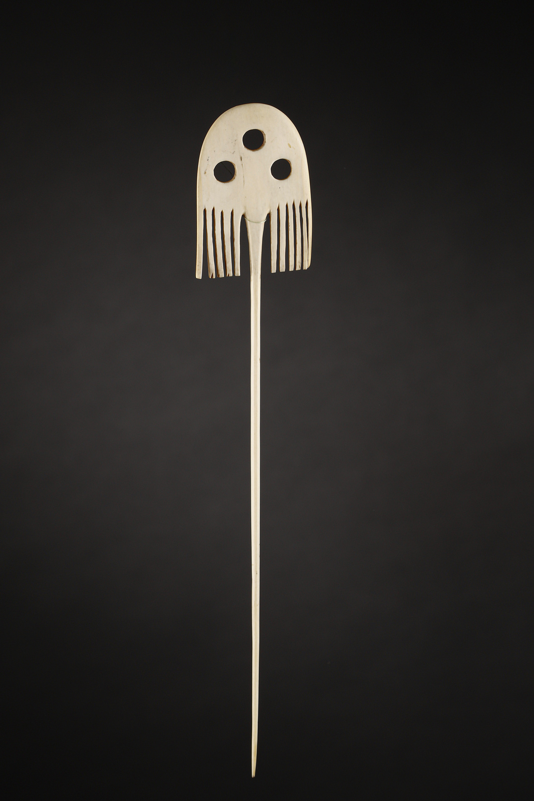 Arte africana - Mangbetu o Zande - Repubblica Democratica del Congo. Spillone per capelli. Avorio. Segni d'uso.