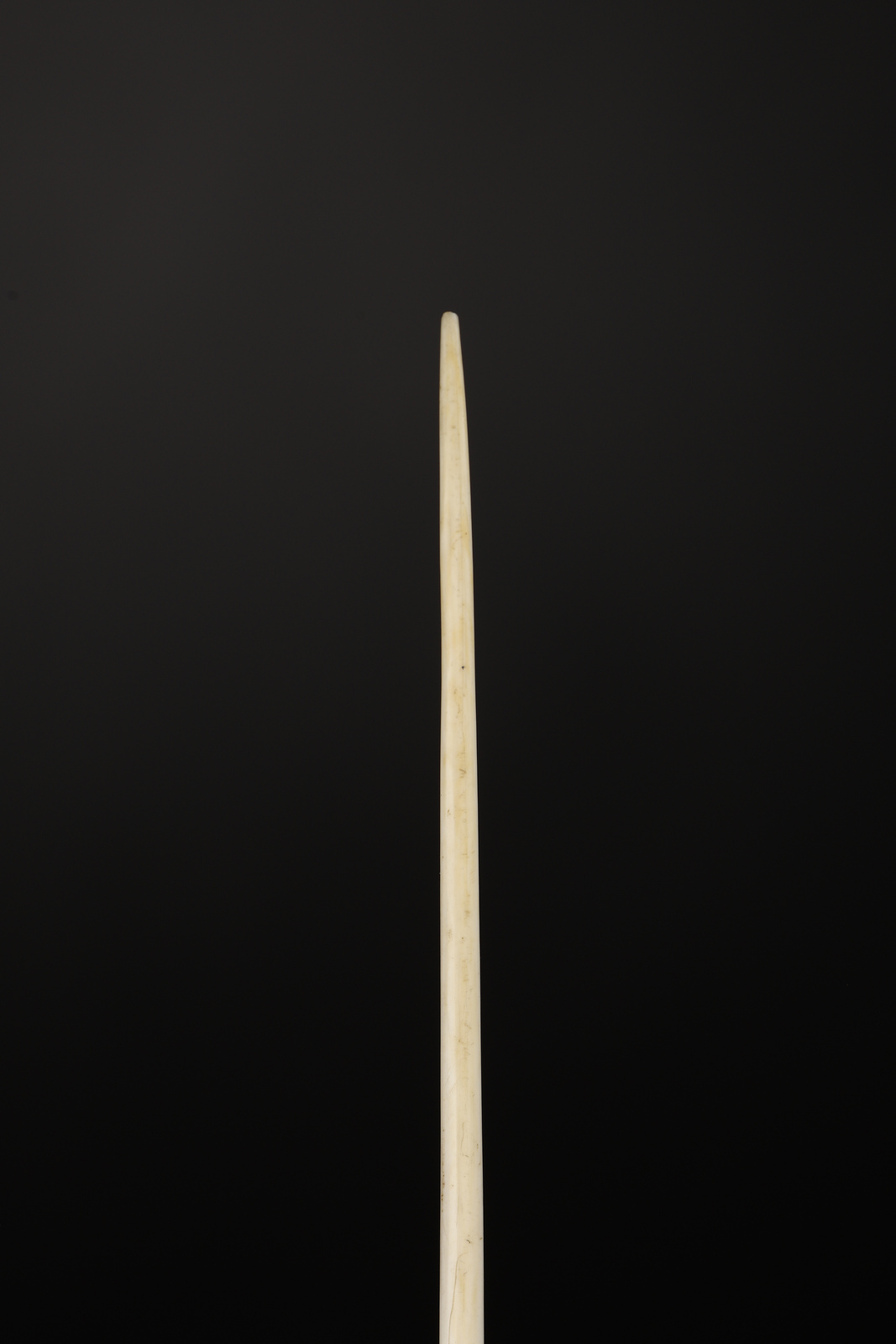 Segni d'uso. . Cm 5,70 x 33,50 x 0,50. Raro ed importante spillone per capelli in avorio utilizzato in Congo dalle donne per le loro elaborate acconciature e come emblema di rango.