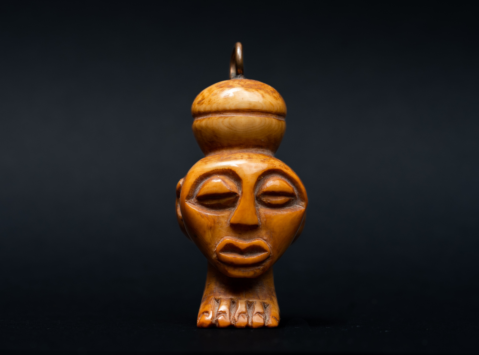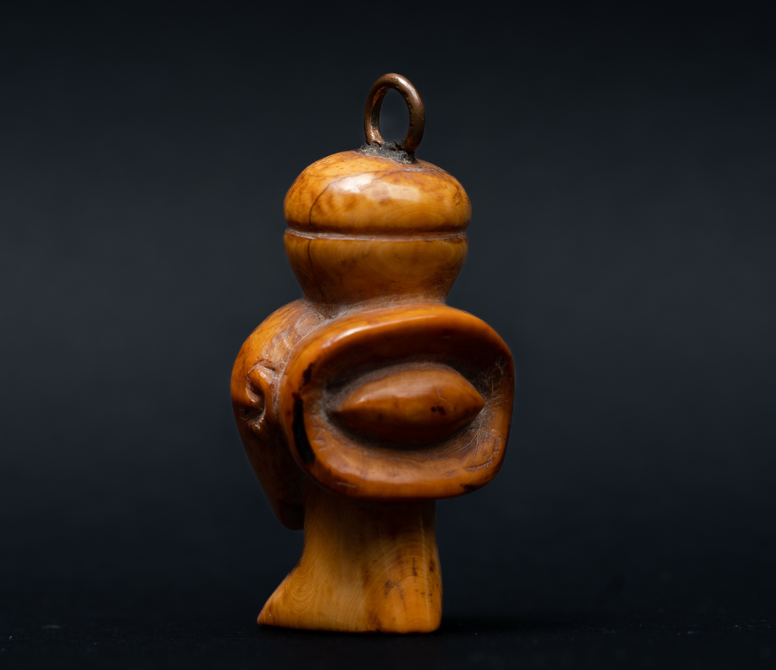 Arte africana - Pendente in forma di testa e piede. Avorio. Segni d'uso.