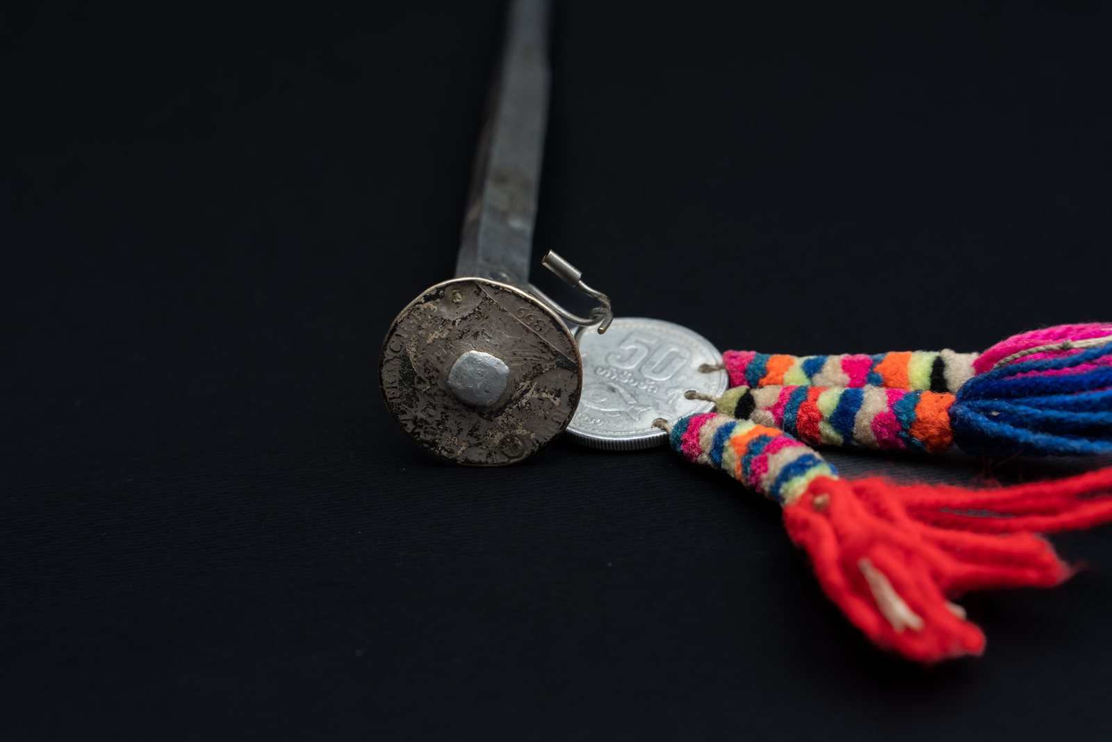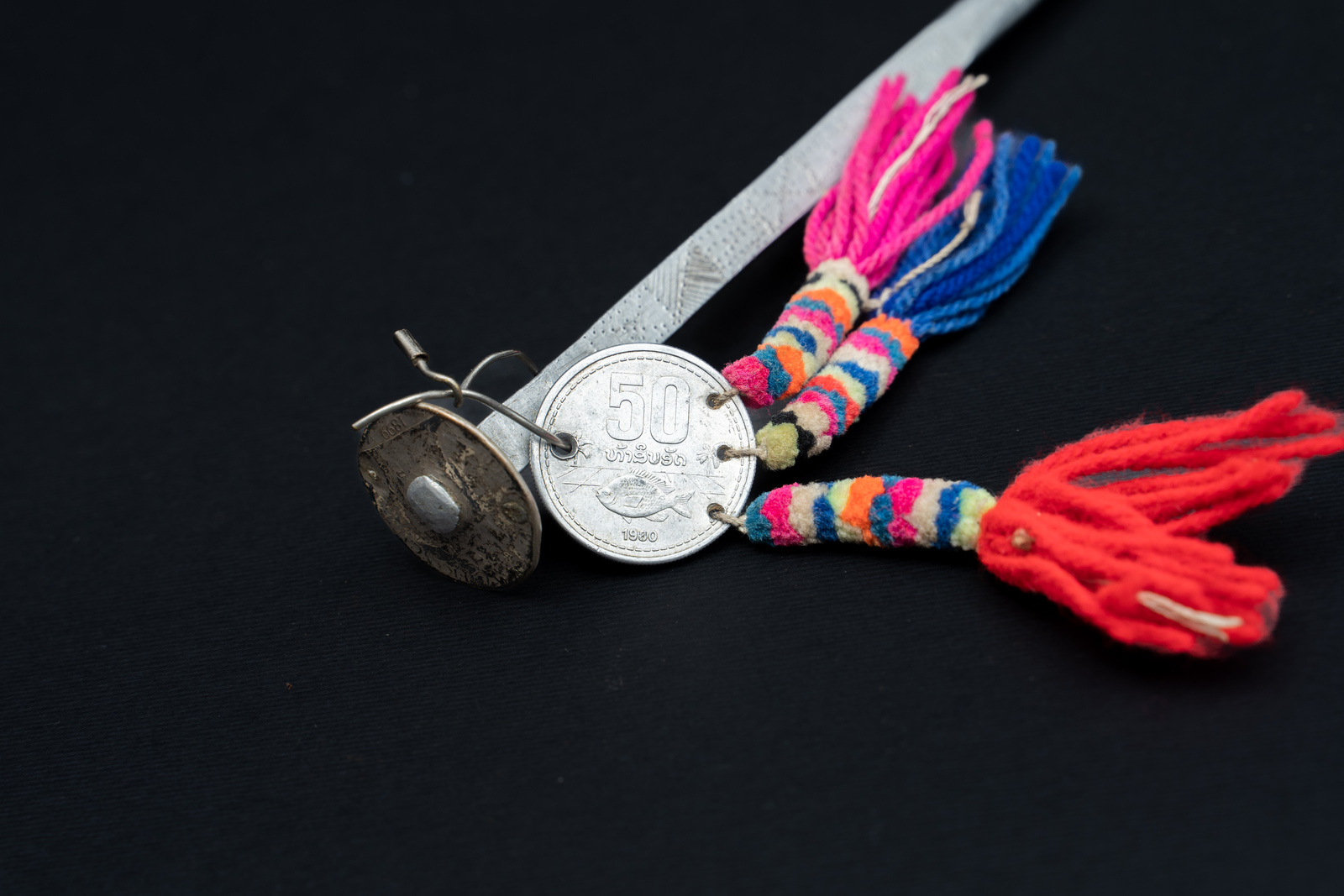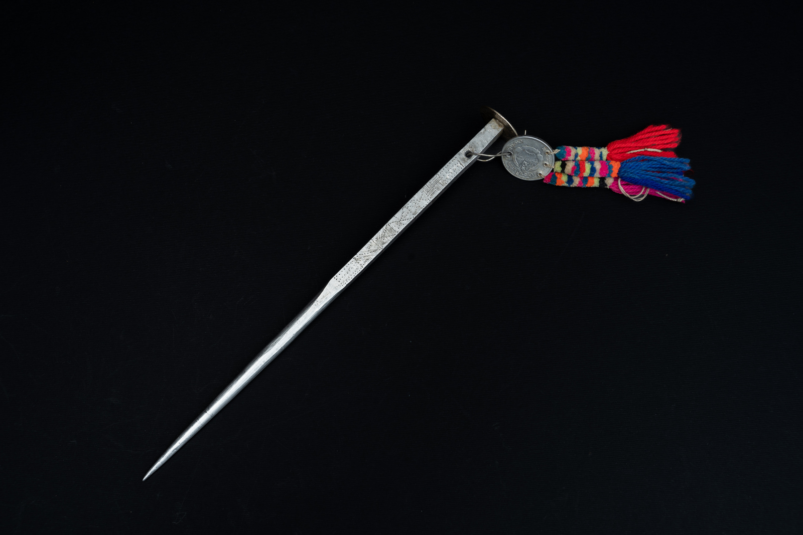 Arte Cinese - Cina Miao. Spillone. Alluminio e tessuto e monete. 1899.