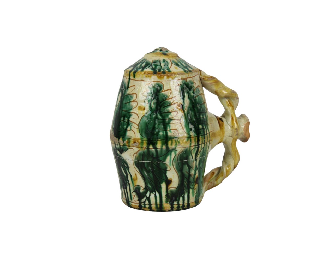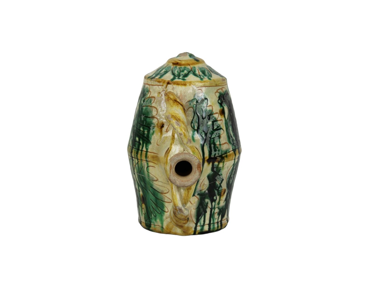 FIASCA in maiolica invetriata decorata a motivi floreali , manifattura siciliana fine XIX secolo .lesione evidente. h cm 20 X 17 X 12,5