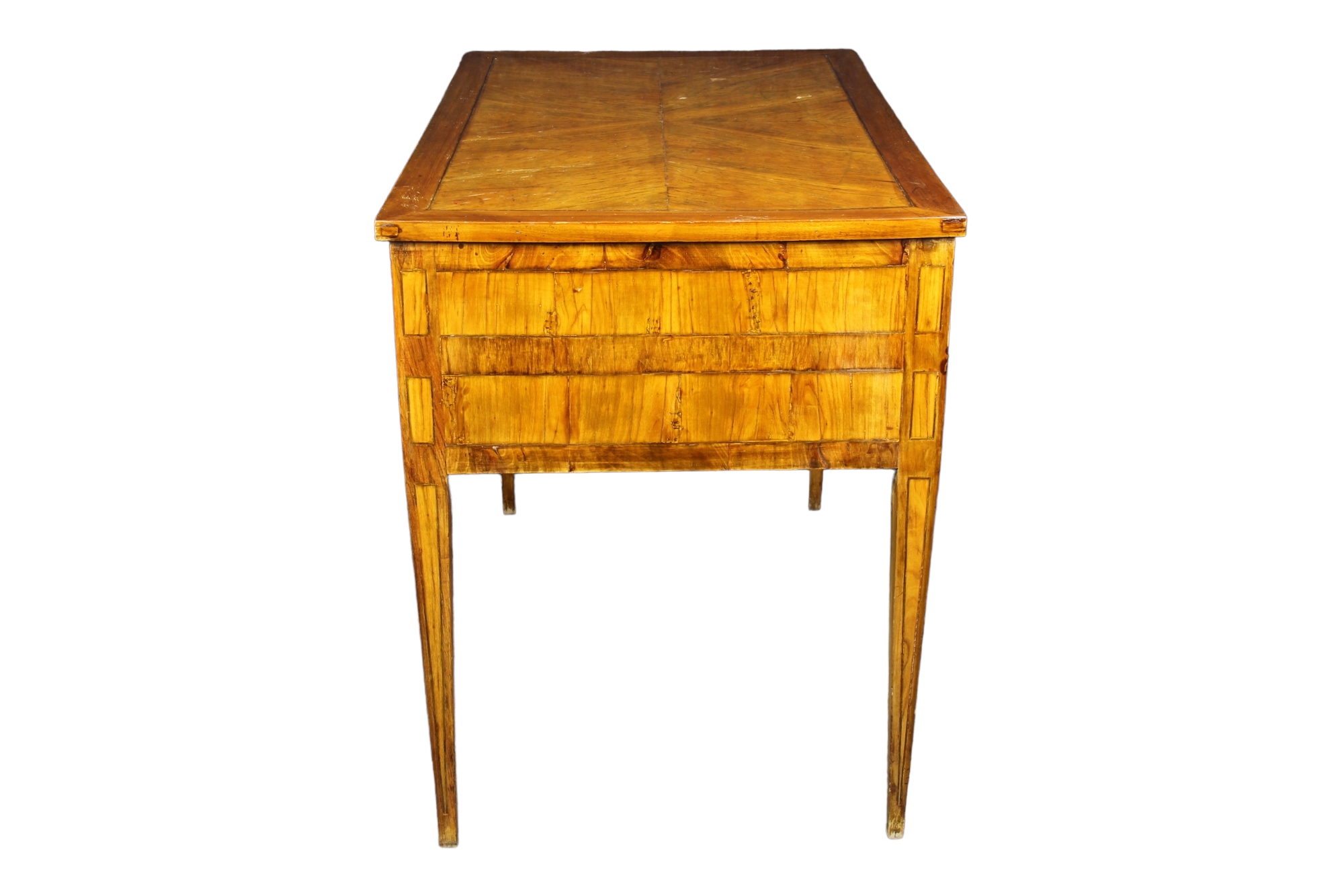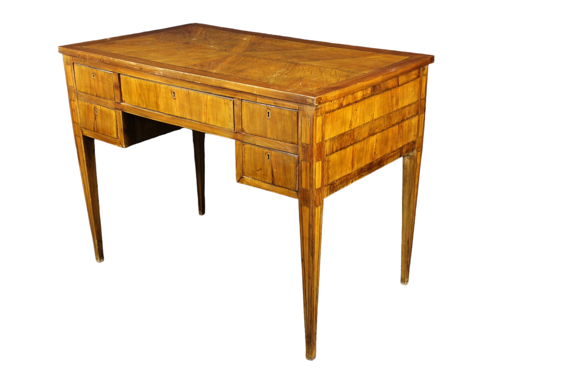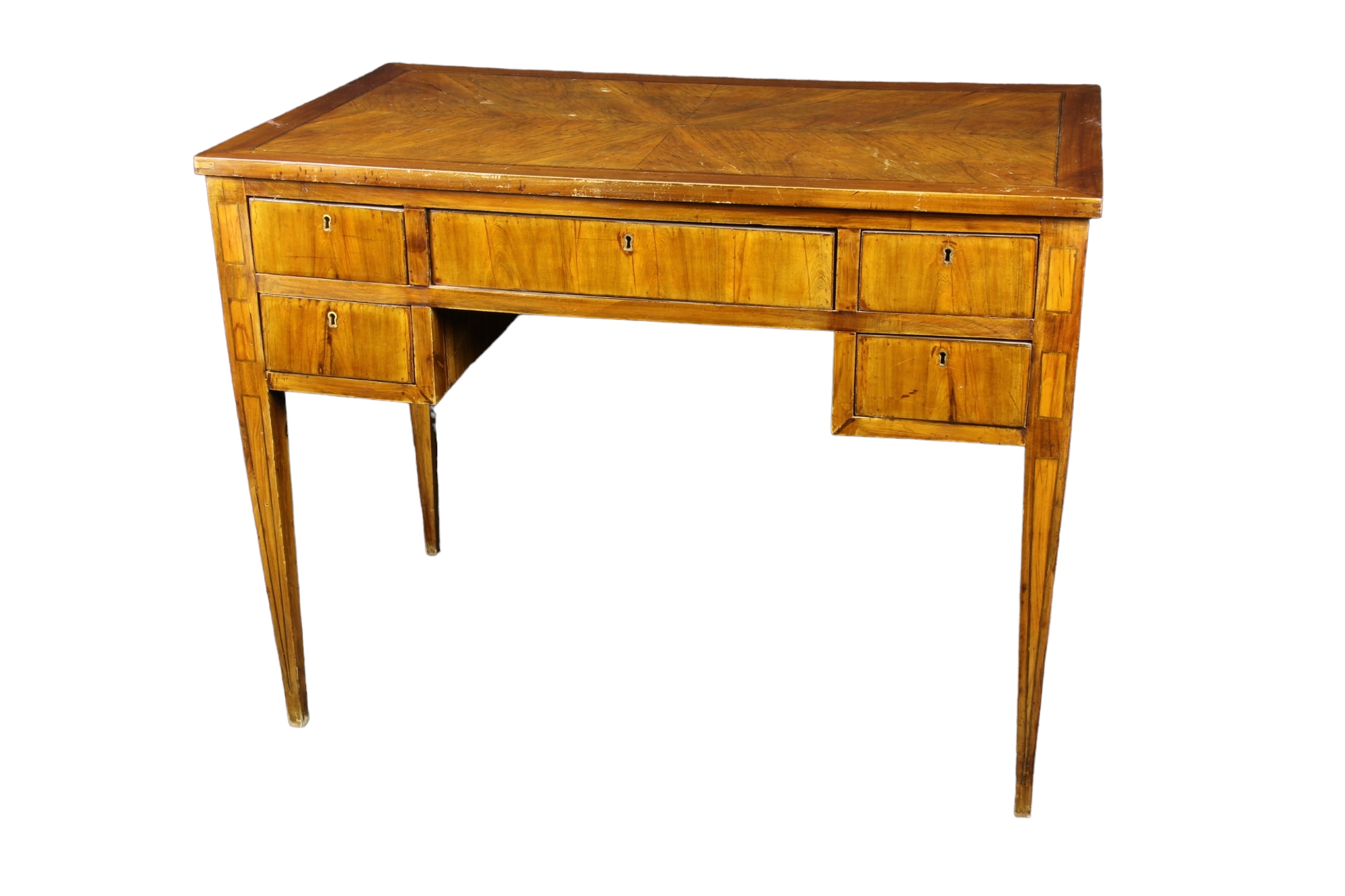 SCRIVANIA LUIGI XVI lastronata in noce a cinque cassetti, piede a spillo. Sicilia fine XVIII secolo. h cm 82 X 107 X 64