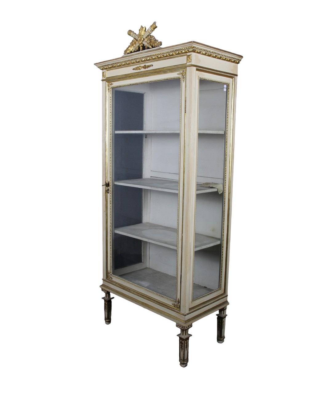 ELEGANTE VETRINA AD 1 ANTA in legno laccato e dorato. Sicilia 1820 circa . h cm 193 x 82 x 44. usure del tempo