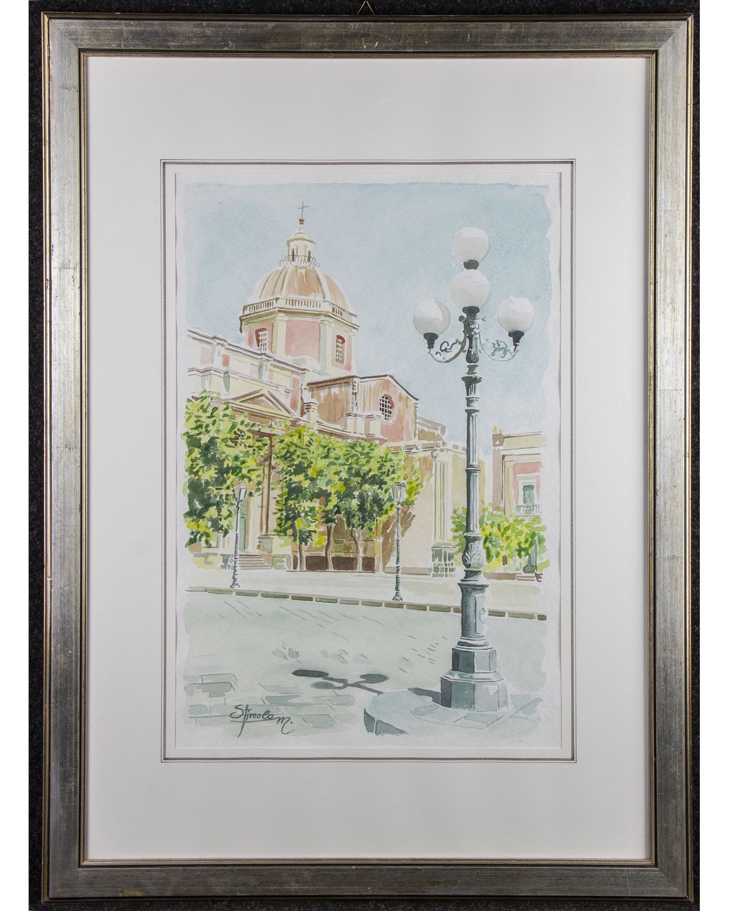 LITOGRAFIA corredata da opuscolo Raff Piazza Duomo di Acireale a firma Stimolo Massimiliano XX secolo Sicilia h cm 50 x 35
