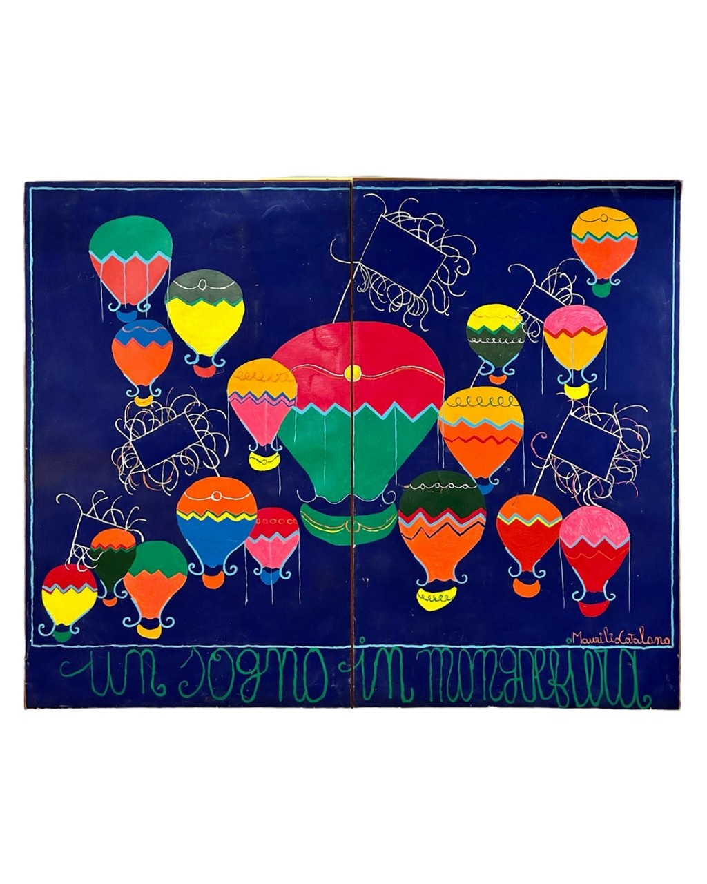 MAURILIO CATALANO ACRILICO SU COMPENSATO opera unica composta da due pannelli Raff Mongolfiere h cm 280 x 340