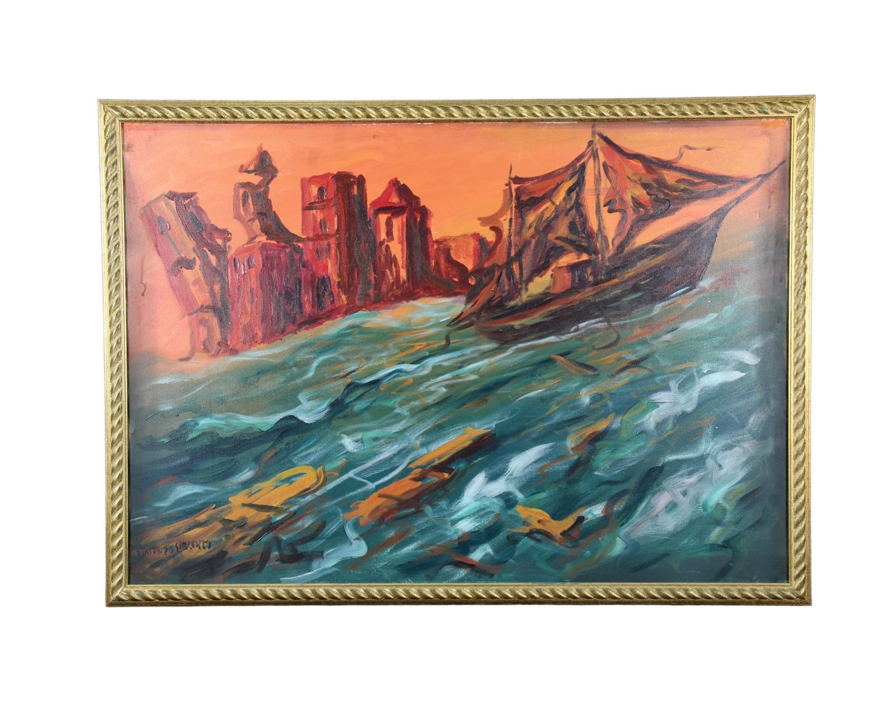 Precedente Lotto 427 Successivo Trionfante Antiques - VIA ALTOFONTE 82, 90129 PALERMO ARTI VISIVE DEL 900 ARTI VISIVE DEL 900 giovedì 22 dicembre 2022 ore 20:30 (UTC +01:00) OLIO SU TELA OLIO SU TELA RAFFIGURANTE BARCA NELLA TEMPESTA h cm 70 x 100