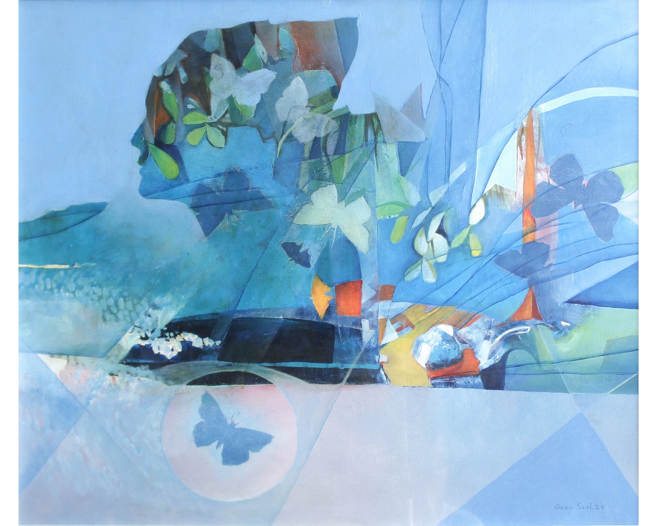 DIPINTO SU TELA Intitolato Le Farfalle firma in basso Scalzo XX secolo h cm 58 x 68
