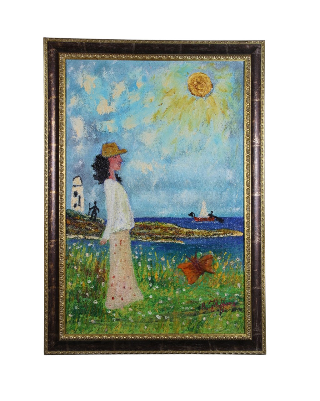 ROSARIO FILIPPONE TECNICA MISTA SU TELA RAFFIGURANTE RAGAZZA CON FARFALLA h cm 88 x 58,5