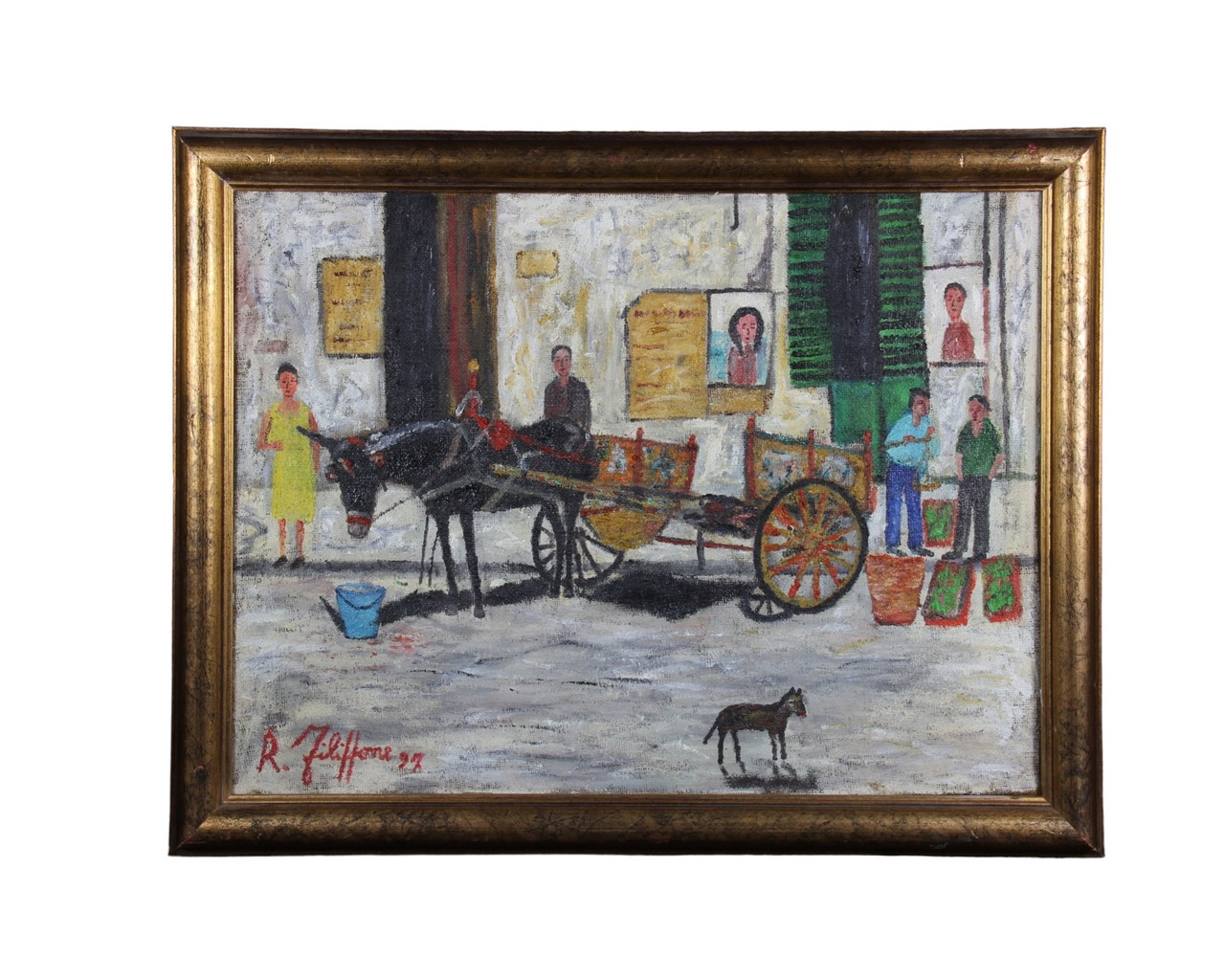 ROSARIO FILIPPONE OLIO SU TELA TITOLO IL CARRETTO SICILIANO h cm 60 x 80