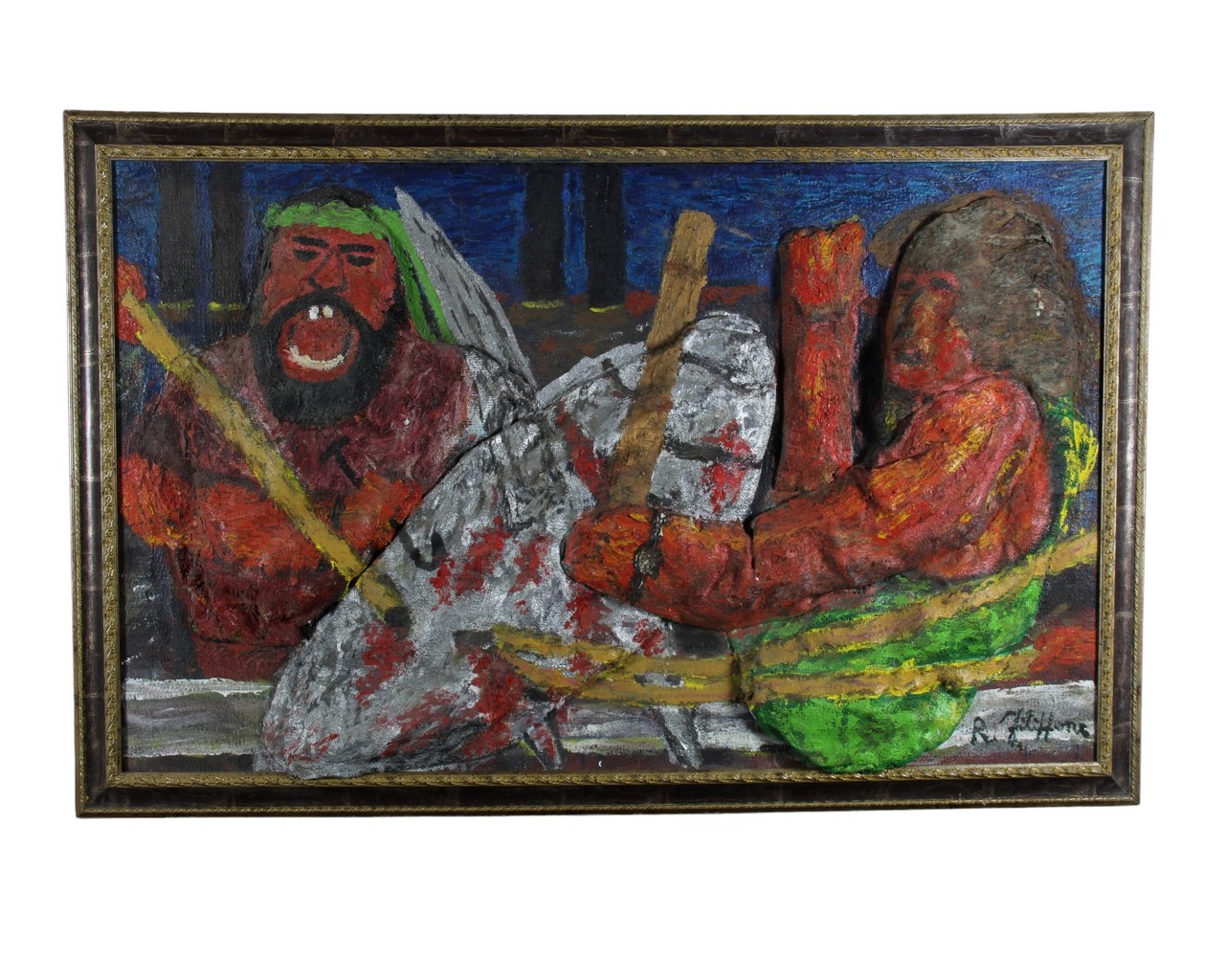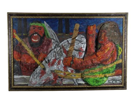 Precedente Lotto 498 Successivo Trionfante Antiques - VIA ALTOFONTE 82, 90129 PALERMO ARTI VISIVE DEL 900 ARTI VISIVE DEL 900 giovedì 22 dicembre 2022 ore 20:30 (UTC +01:00) ROSARIO FILIPPONE ROSARIO FILIPPONE TECNICA MISTA RAFFIGURANTE INDIGENI h cm 137 x 84