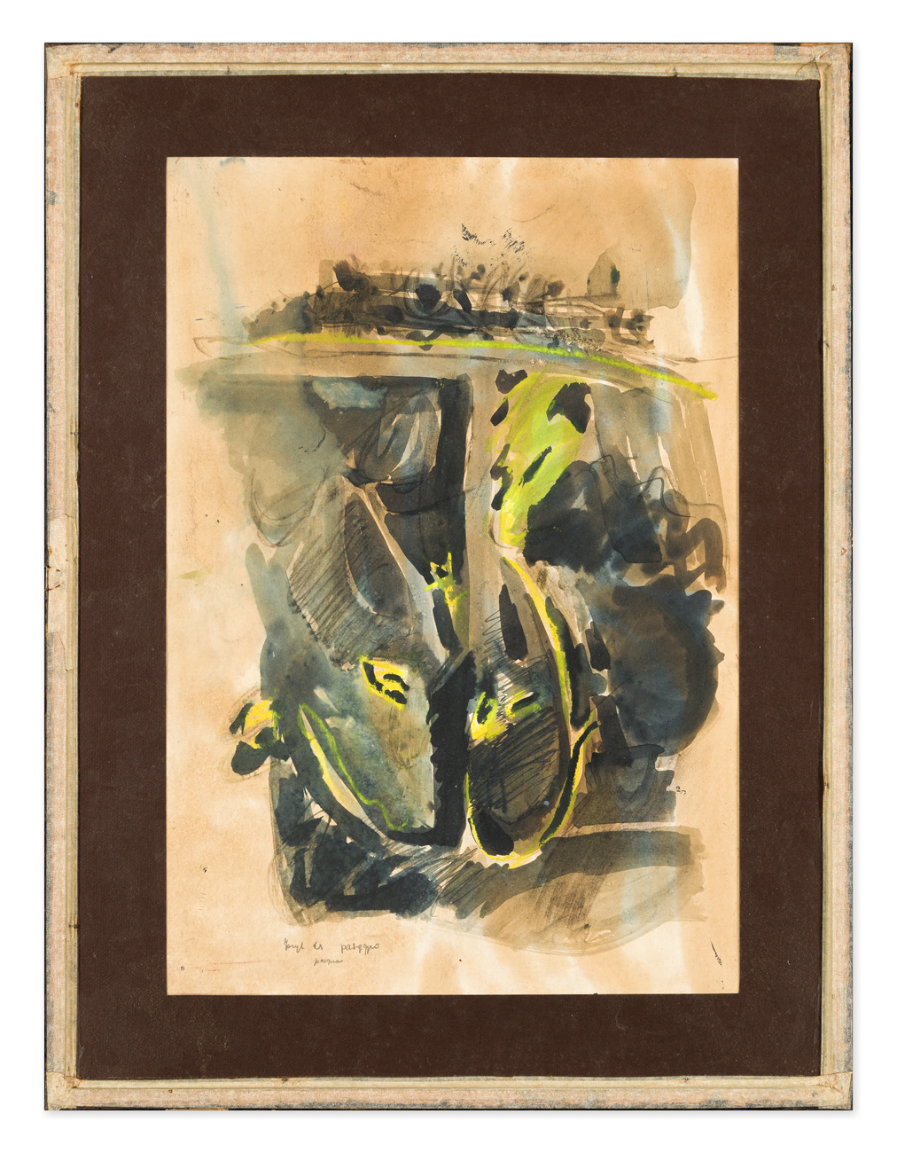 L'opera presenta un ulteriore disegno al retro recante firma, datazione (Pasqua 1961) e titolo (Paesaggio)