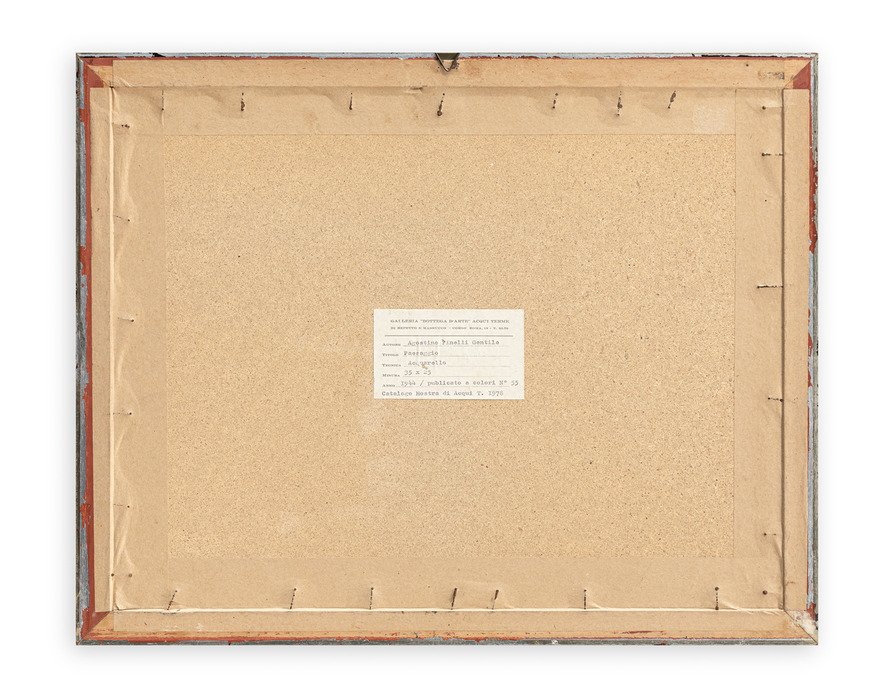 Etichetta della Galleria Bottega d'Arte (AL) al retro del cartone protettivo