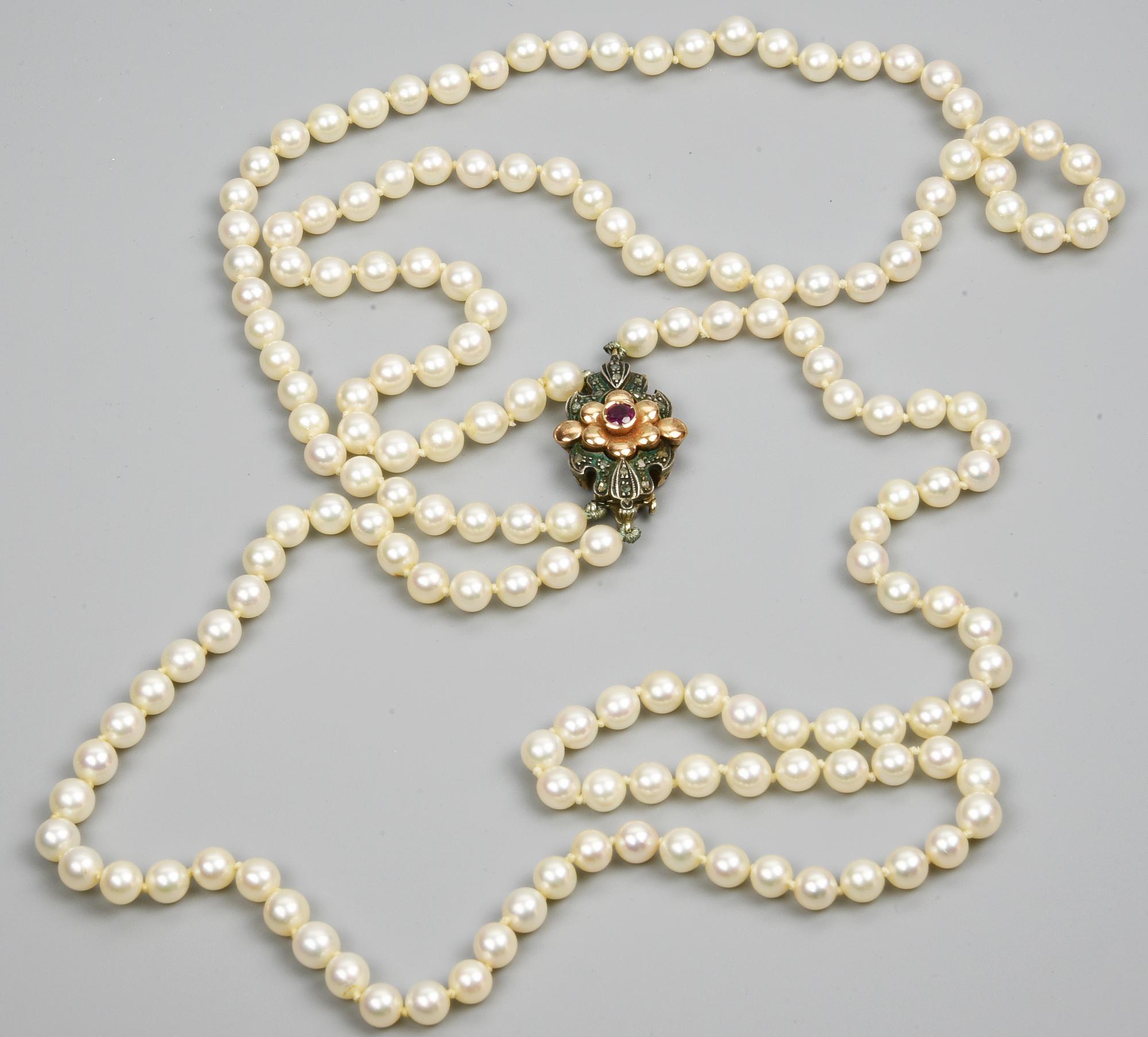 COLLANA DI PERLE CON CHIUSURA IN ORO E RUBINO