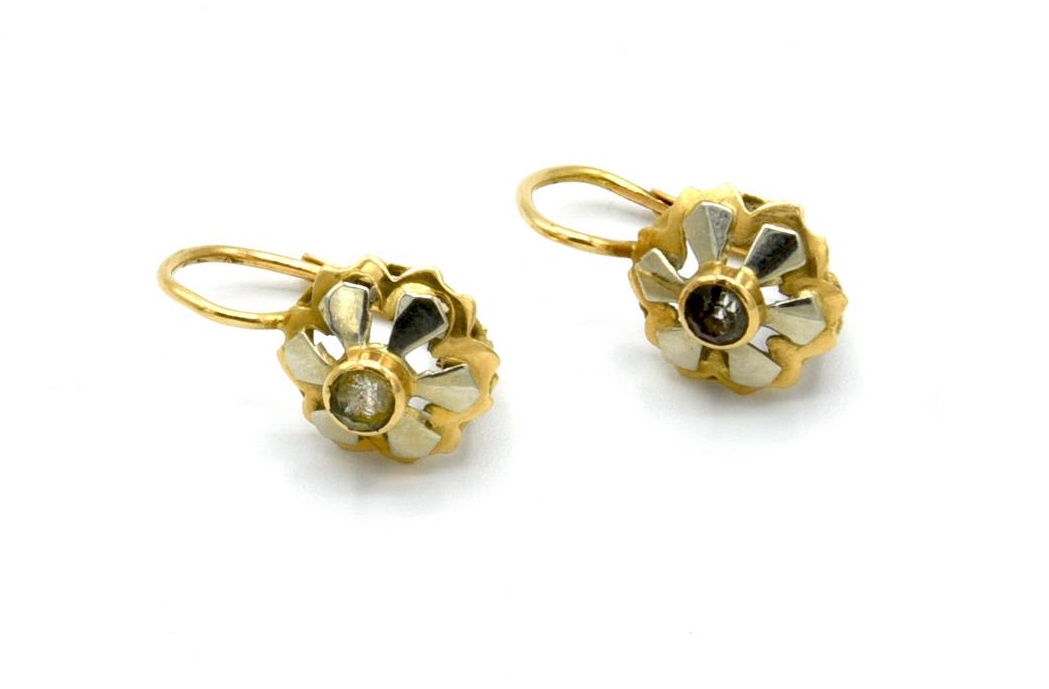 COPPIA DI ORECCHINI A MONACHELLA IN ORO GIALLO CON PICCOLA PIETRA CENTRALE