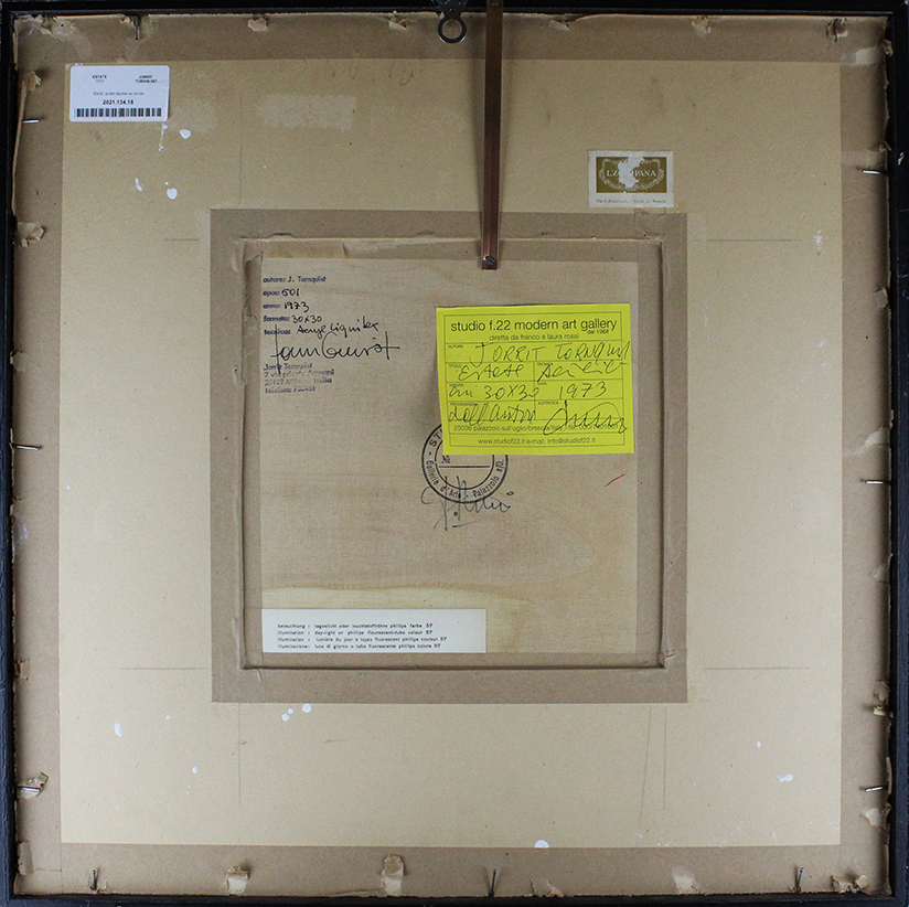 JORRIT TORNQUIST, 1973, "Estate", Acrilici liquitex su tavola, Dim. 30x30, Al verso: firma, data, Etichetta studio F22 modern art gallery Palazzolo sull'oglio/Brescia