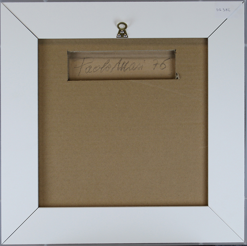 PAOLO MASI, 1977, Tecnica mista su cartone, Dim. 40x40, Opera con autentica su foto dell'artista , Al verso firmato e datato, Opera con teca di plexiglass