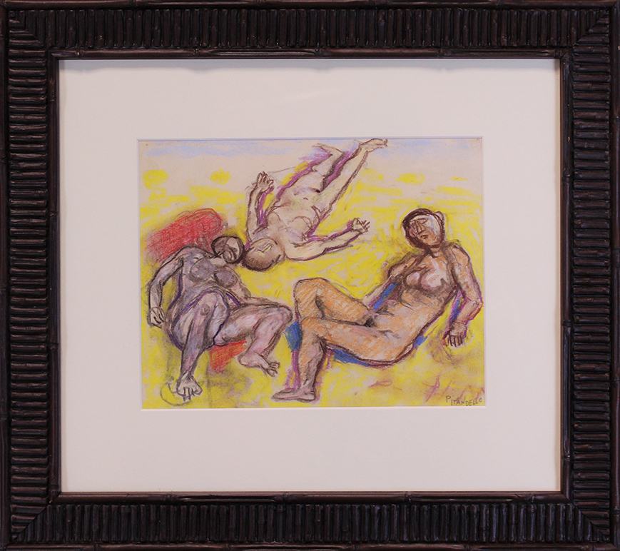 FAUSTO PIRANDELLO, "Bagnanti scorciate", 1970, Pastelli su carta, Dim.22x28, Al fronte firmato in basso a destra, Opera con autentica su foto dell'artista e archiviata presso la fondazione Fausto Pirandello al N° FFP0522009 in data 05/05/2022, Opera con cornice