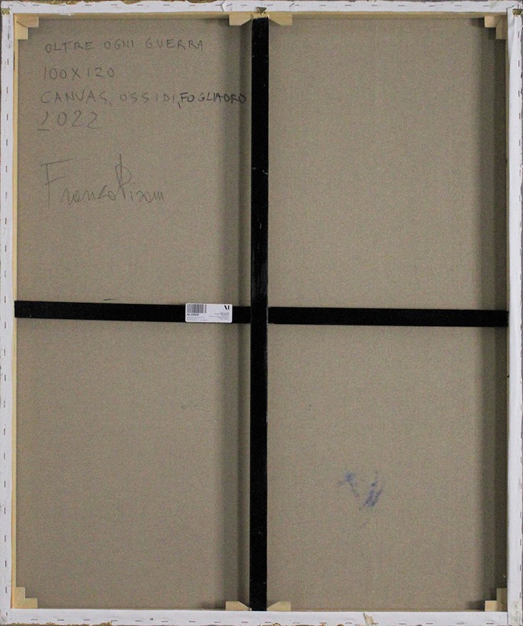 FRANCA PISANI, "Oltre ogni guerra", 2022, Tela ossidi e foglia oro, Dim. 100x120, Al verso: firma, data e titolo, Autentica su foto dell'artista