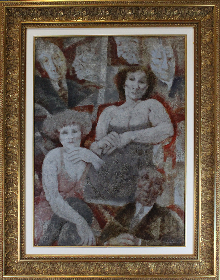 REMO SQUILLANTINI, "Figure", 1977, Olio su tela, Dim. 70x50, Opera archiviata presso l'archivio Remo Squillantini a cura di Giovanbattista Bianco al N° 562/G, Opera con cornice