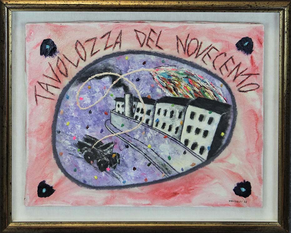 BRUNO DONZELLI, "Tavolozza del novecento", 1988, Dim. 40x50, Al fronte: in basso a destra data e firma, Al verso: titolo, data e firma, Opera accompagnata da autentica su foto dell'artista, pubblicata sul Catalogo Donzelli edizioni il Gianicolo Perugia, Opera con cornice