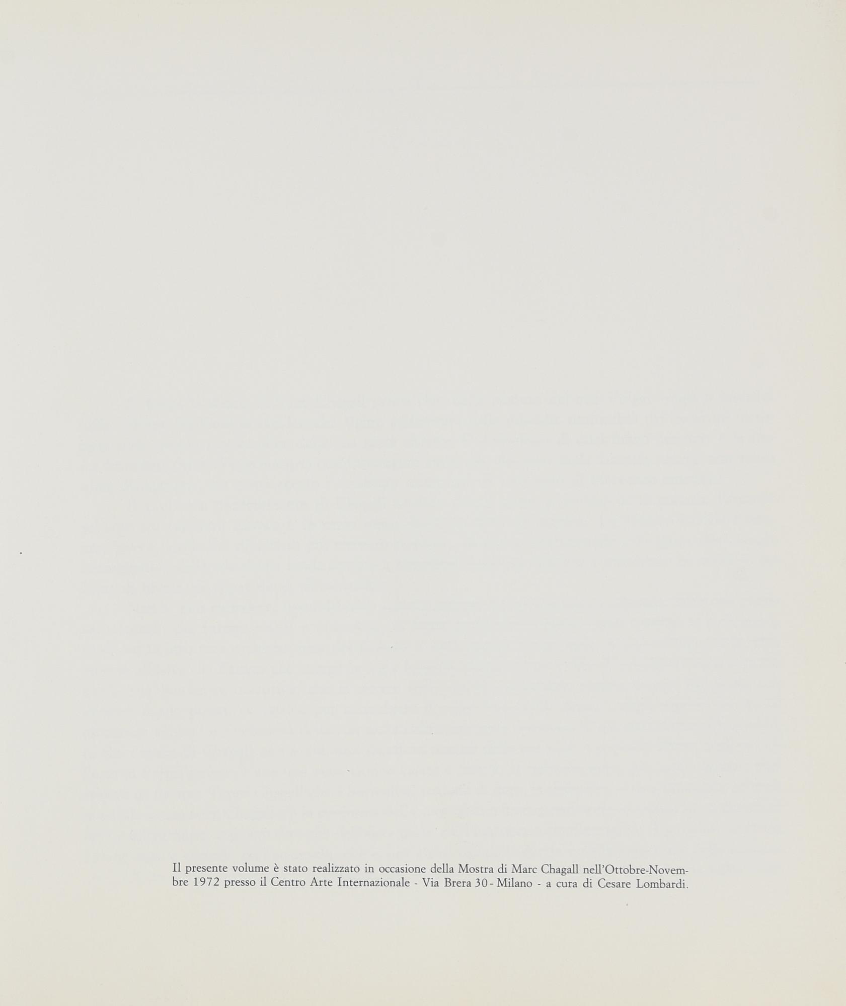 volume edito da Centro Arte Internazionale Milano in occasione della mostra 'Marc Chagall. Opere scelte' tenutasi nel 1972 con riprodotte 19 tavole fotolitografiche